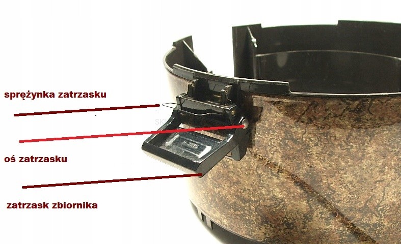 Zatrzask klamerka zbiornika do odkurzacza Rainbow model SE-D4G produkowanych w latach 1980-1998r.
